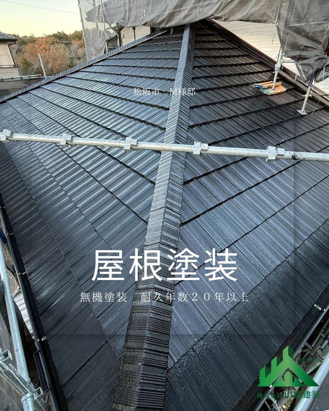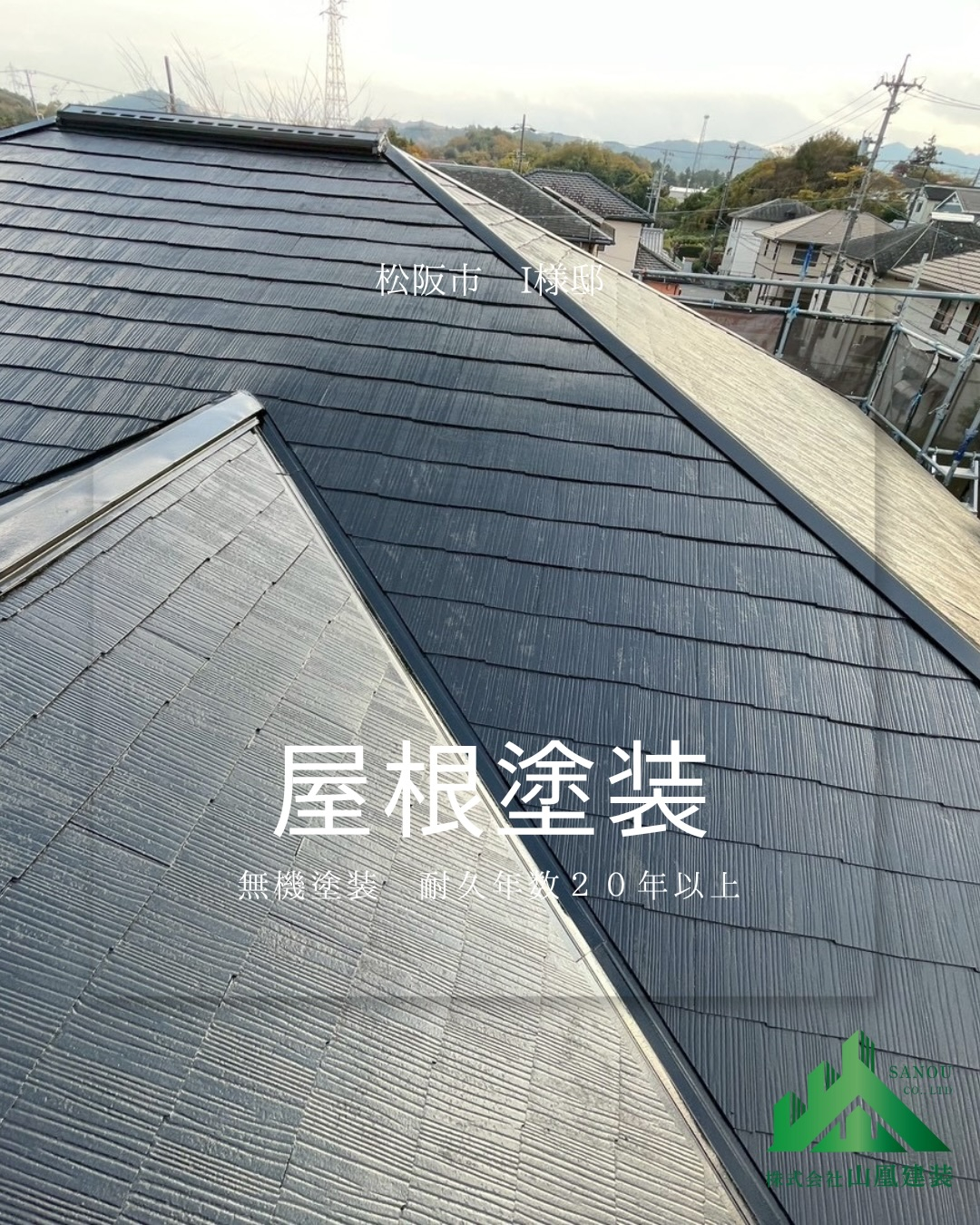 【屋根塗装工事完工しました🏠✨】屋根の下地処理から高圧洗浄・下塗り・中塗り・上塗りまですべての工程が無事に完了しました😊今回の仕上げには、耐久性の高い無機塗料を使用しています。無機塗料は、紫外…